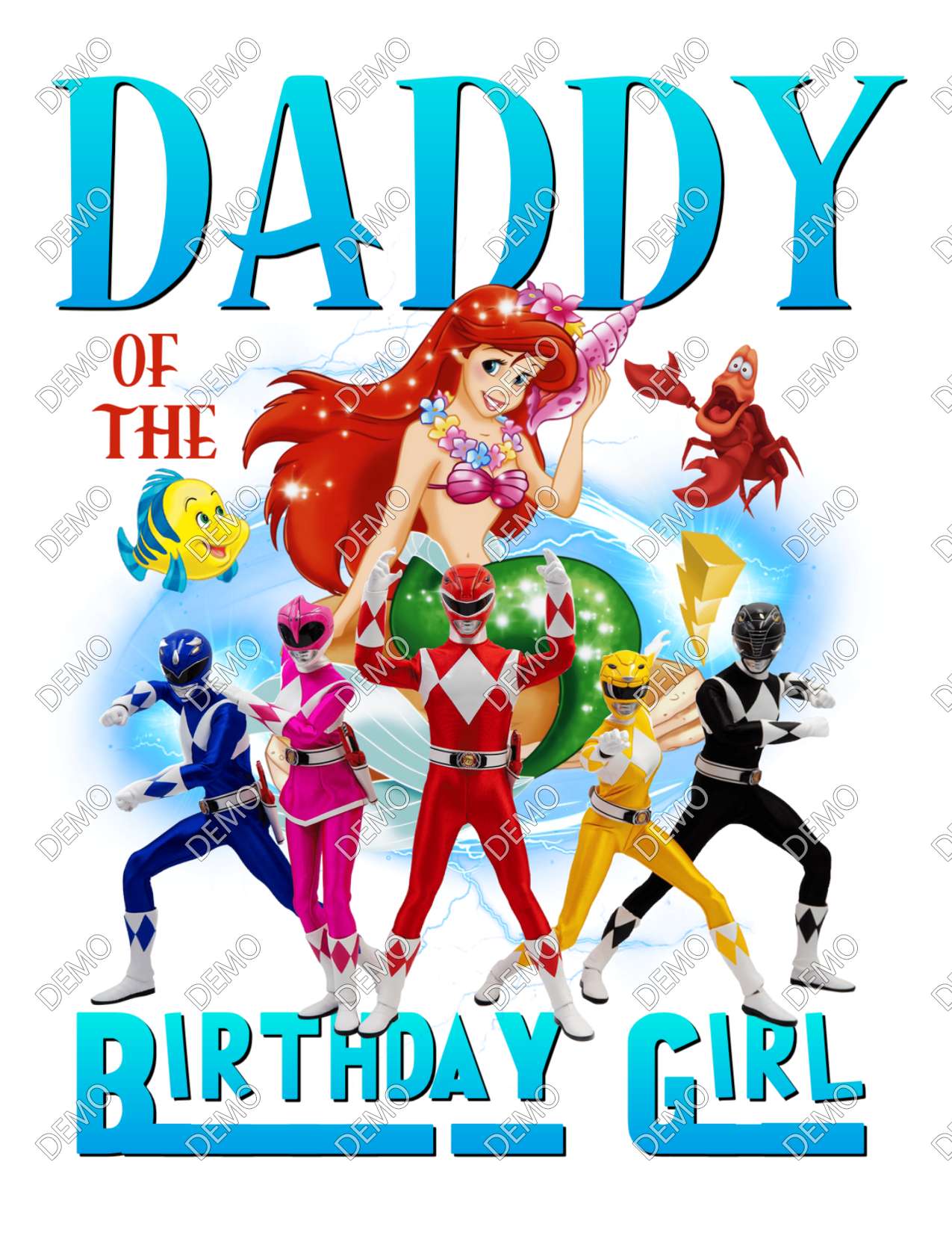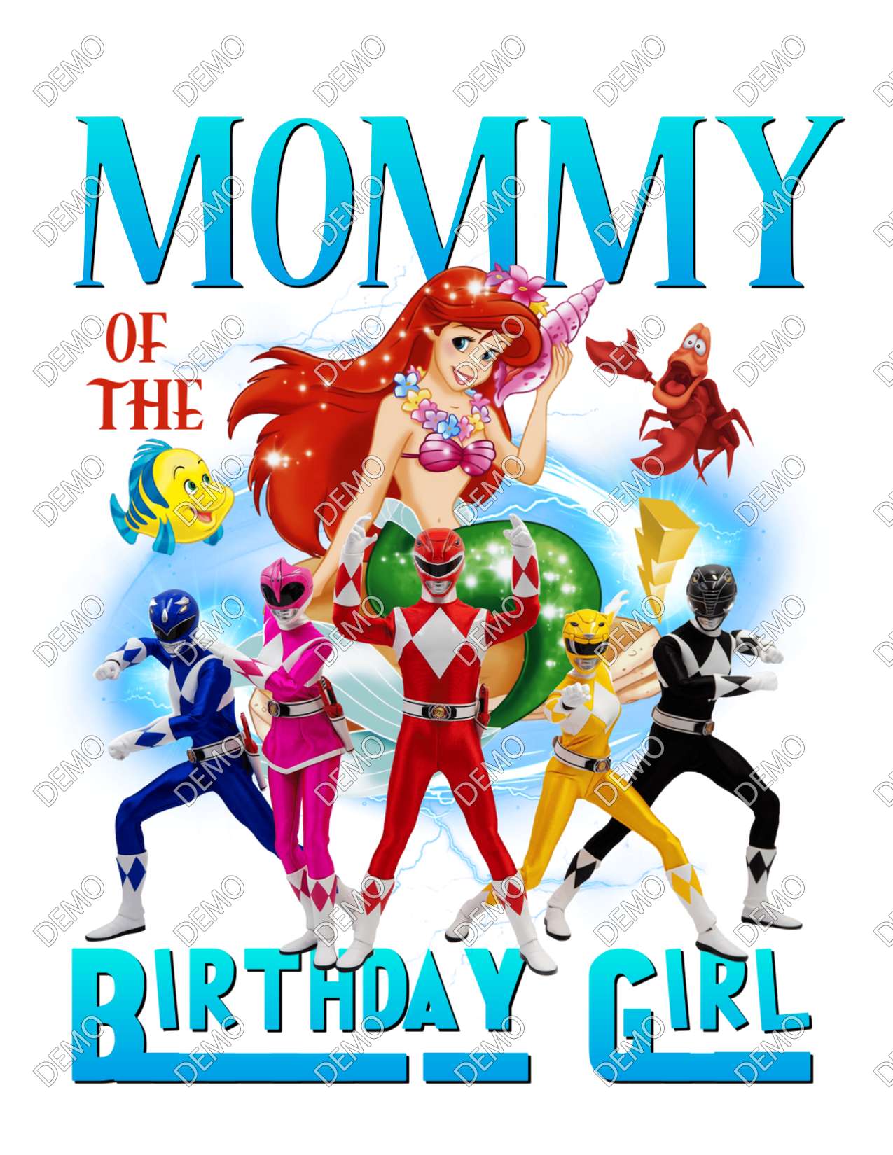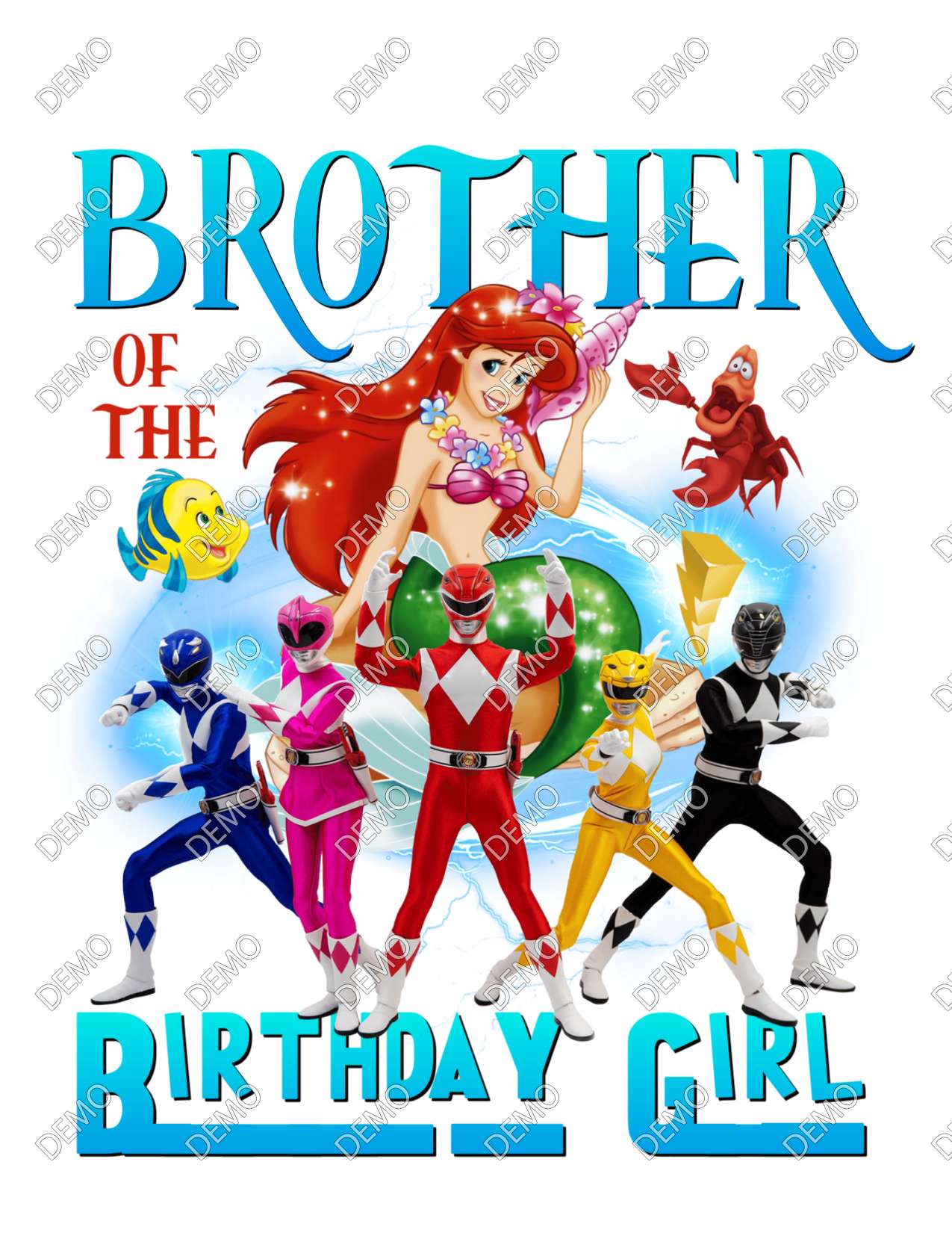 Power Rangers and Mermaid Family Birthday Party T-Shirt